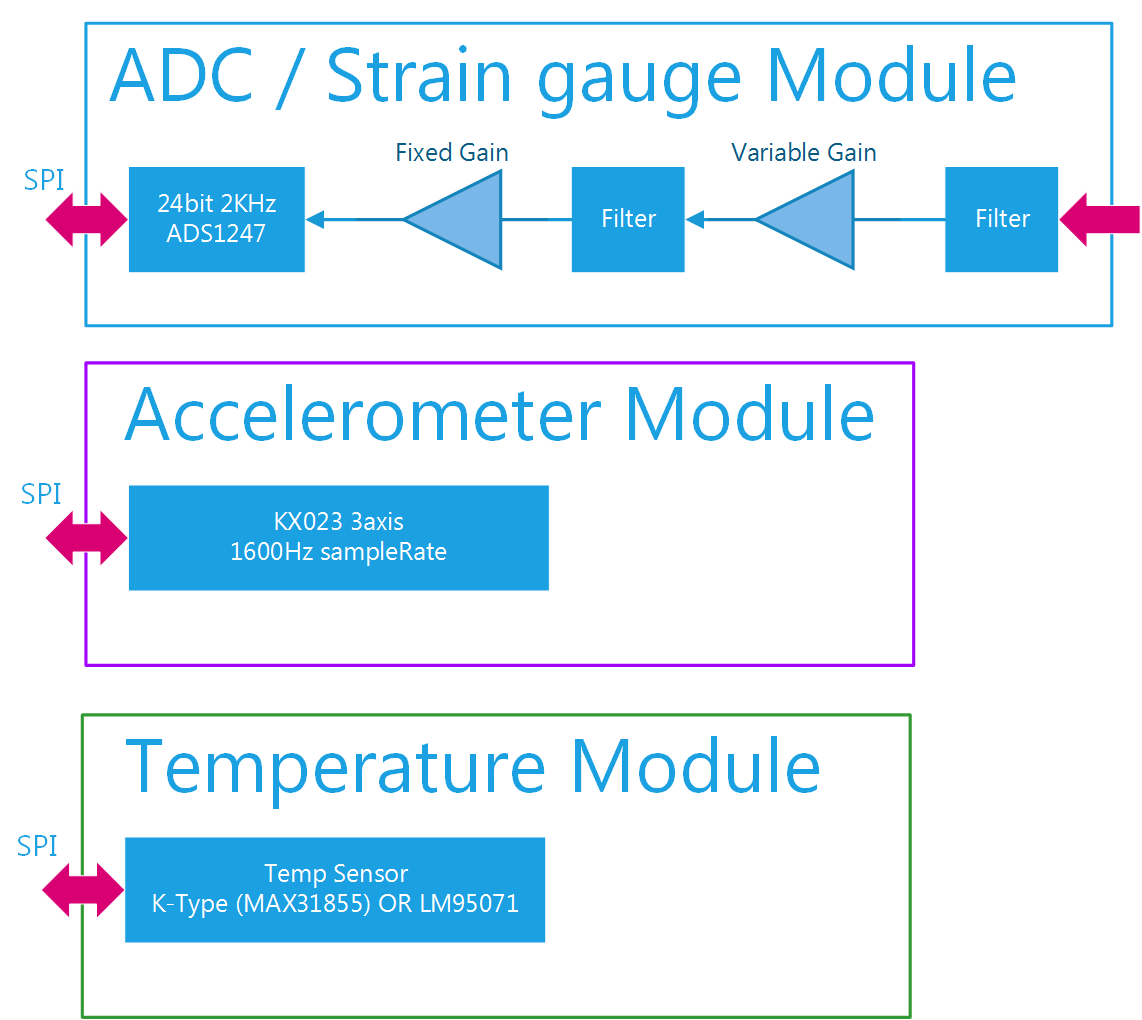 Each Sensor module holds two high-speed SPI buses that will be used for transferring data between sensors and the computer.
