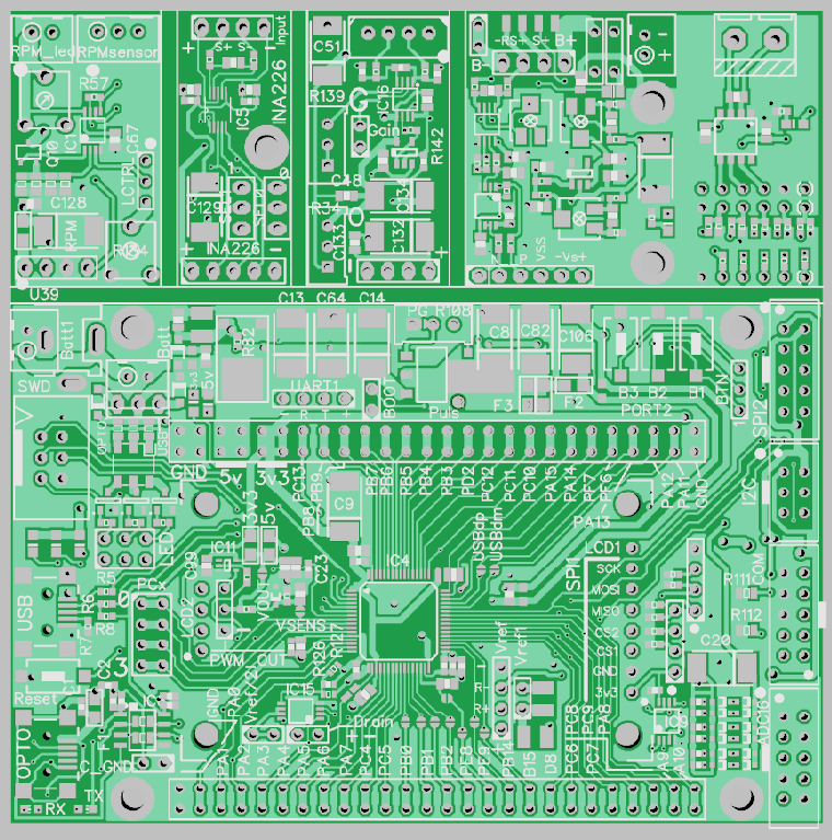 Main module is based on the STM32F4 32bit MCU that has plenty of power, so there will no problem to implement the functions I would need.